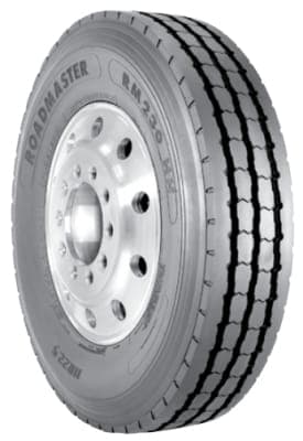 The Roadmaster RM230HH is a versatile all-position tire for medium and heavy trucks that occasionally see rough service off-road or on unimproved roads. The RM230HH features a cut-and-chip resistant tread compound, a reinforced casing, stone ejectors built into tread grooves, and an innovative sidewall depth indicator that lets operators know when it's time to rotate tires.